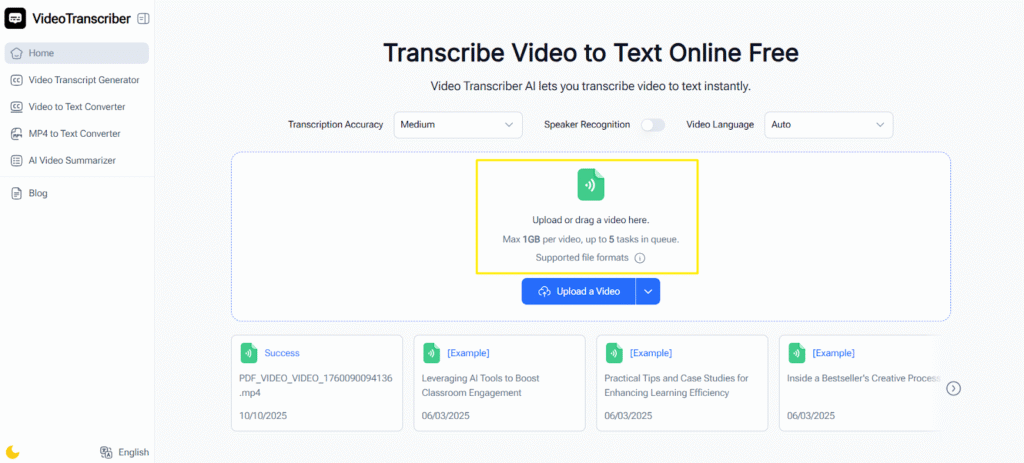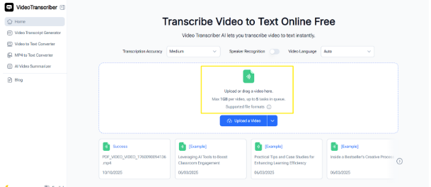 Video Transcriber AI changes that equation completely. Instead of spending hours or paying professionals, you can upload your video and get an accurate transcript in minutes — for free.