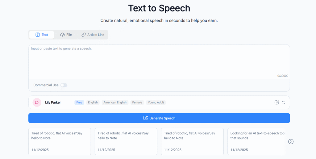 NoteGPT Text to Speech: Streamlining Everyday Audio Tasks for Creators and Professionals ByCaesar Hours November 21, 2025November 21, 2025 Categories Blog WhatsApp Channel Join Now